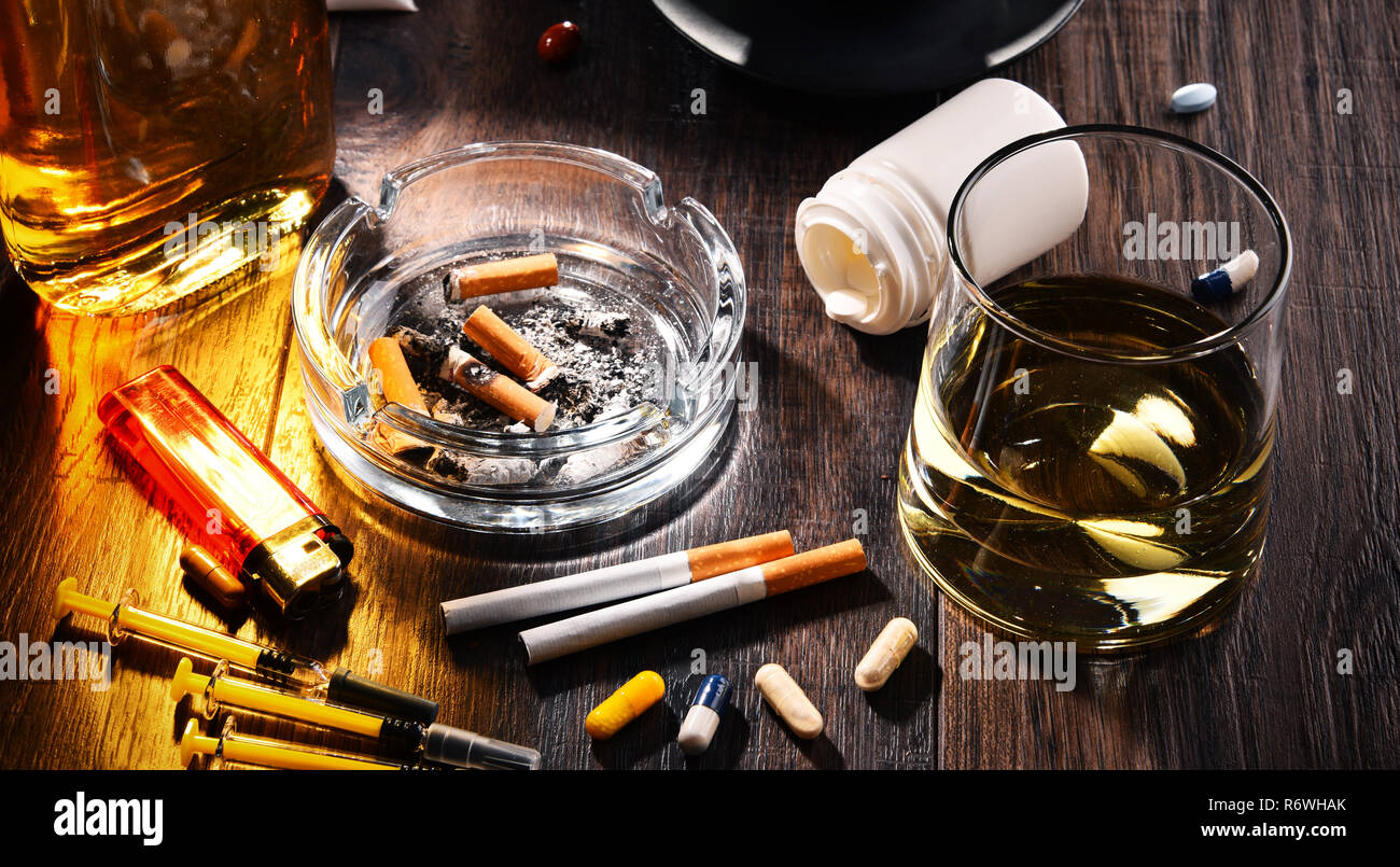 Addictive Substances Including Alcohol Cigarettes And Drugs Stock Photo Picture And Royalty Free Image Pic Wr3356183 Agefotostock